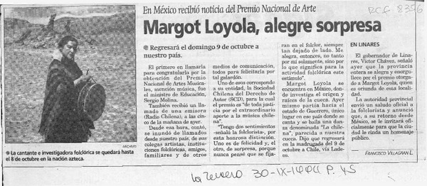 Margot Loyola, alegre sorpresa [artículo] Francisco Villagrán L.