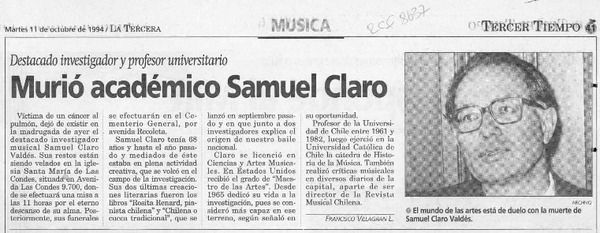 Murió académico Samuel Claro [artículo] Francisco Villagrán L.