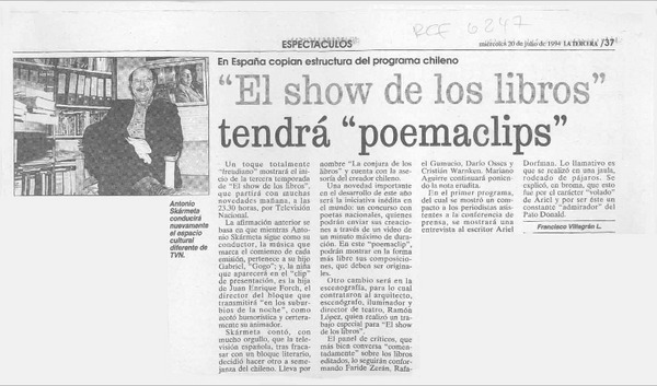"El show de los libros" tendrá "poema-clips" [artículo] Francisco Villagrán L.