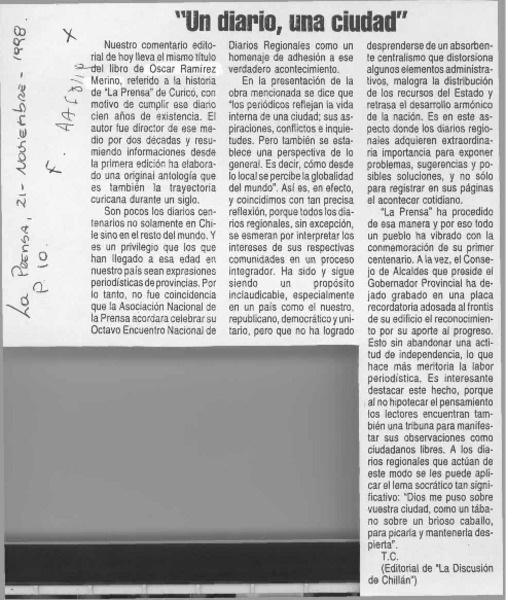 "Un diario, una ciudad" [artículo] T. C.