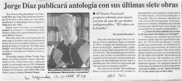 Jorge Díaz publicará antología con sus últimas siete obras [artículo] Javier Ibacache V.