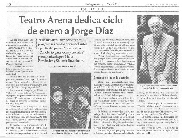 Teatro Arena dedica ciclo de enero a Jorge Díaz [artículo] Javier Ibacache V.