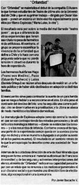 "Orfandad" [artículo] Javier Ibacache V.