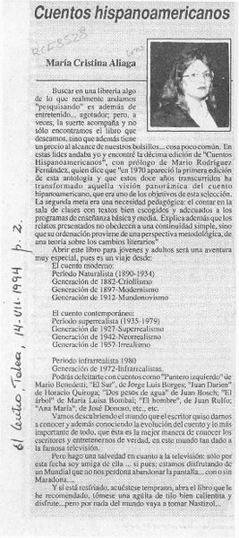 Cuentos hispanoamericanos [artículo] María Cristina Aliaga.