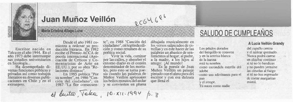 Juan Muñoz Veillón [artículo] María Cristina Aliaga Luna.
