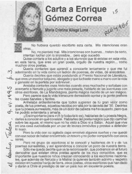 Carta a Enrique Gómez Correa [artículo]María Cristina Aliaga Luna.