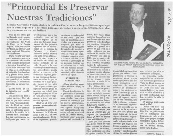 "Primordial es preservar nuestras tradiciones" [artículo] Katherine López G.
