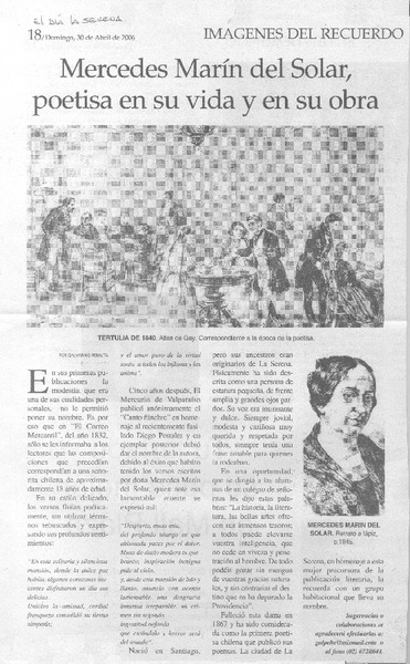 Mercedes Marín del Solar, poetisa ensu vida y en su obra. [artículo]Galvarino Peralta Herrera.
