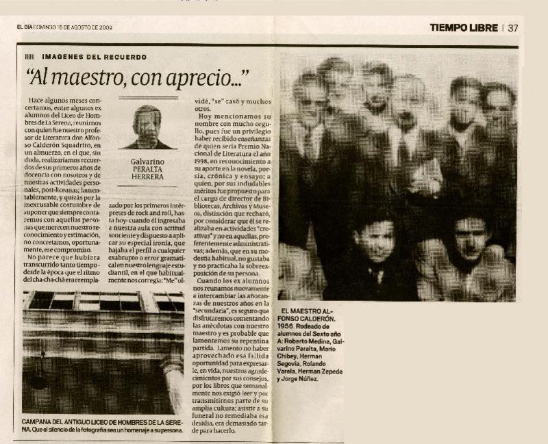 "Al maestro con aprecio --" [artículo] Galvarino Peralta Herrera.