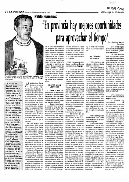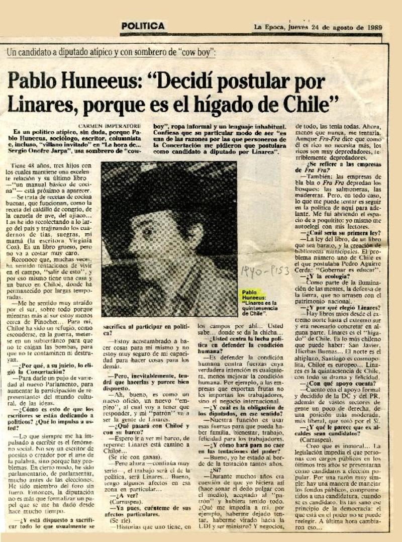 Pablo Huneeus, "Decidí postular por Linares, porque es el hígado de Chile" [artículo] Carmen Imperatore.