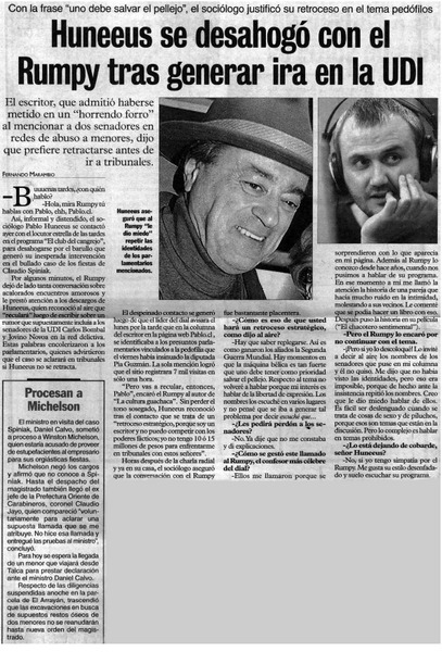 Huneeus se desahogó con el Rumpy tras generar ira en la UDI [artículo] Fernando Marambio.