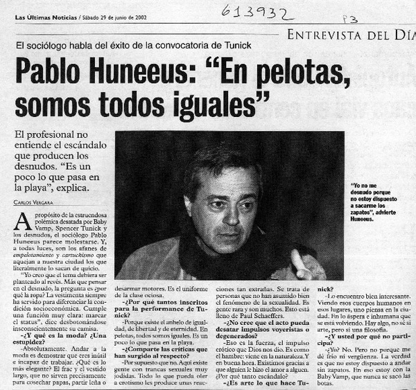 Pablo Huneeus, "En pelotas somos todos iguales" [artículo] Carlos Vergara