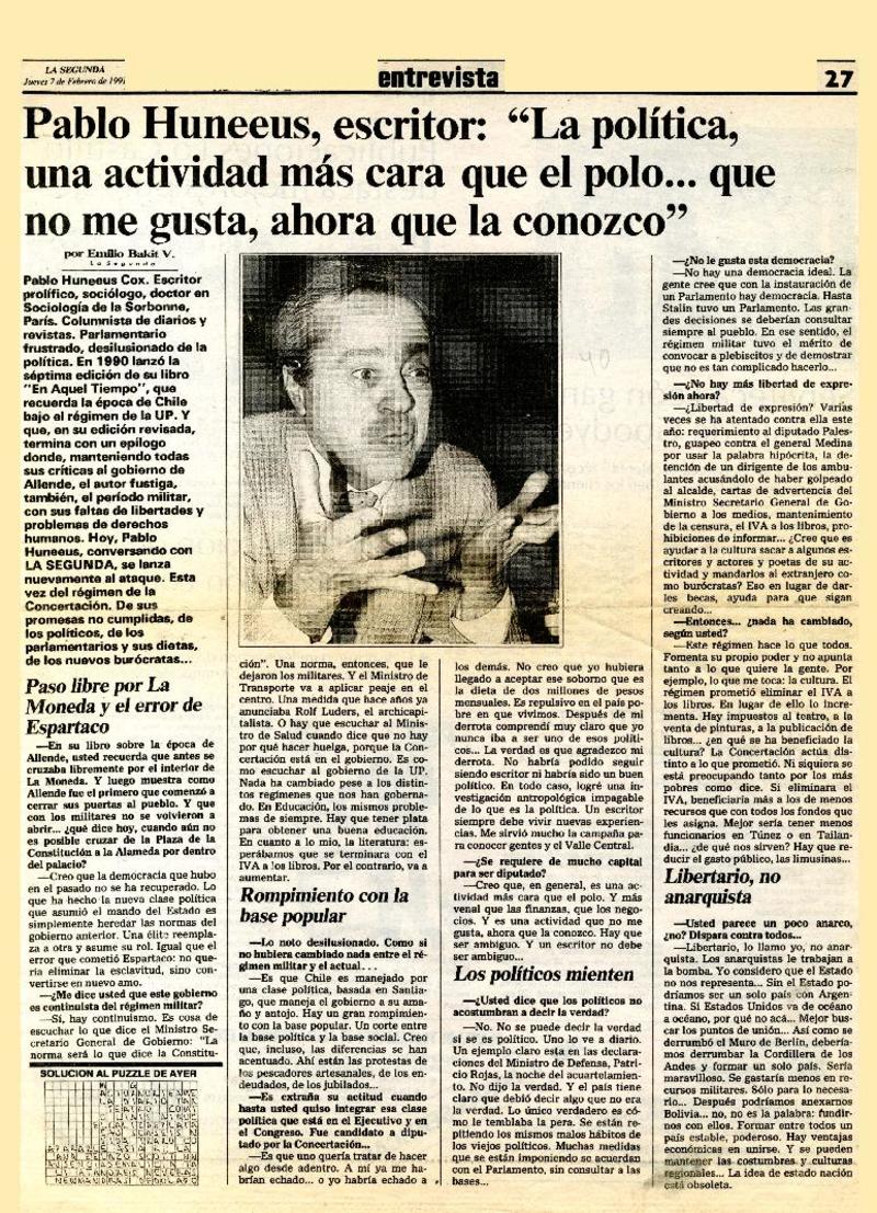 Pablo Huneeus, escritor, "La política, una actividad más cara que el polo -- que no me gusta, ahora que la conozco" [artículo] Emilio Bakit V.