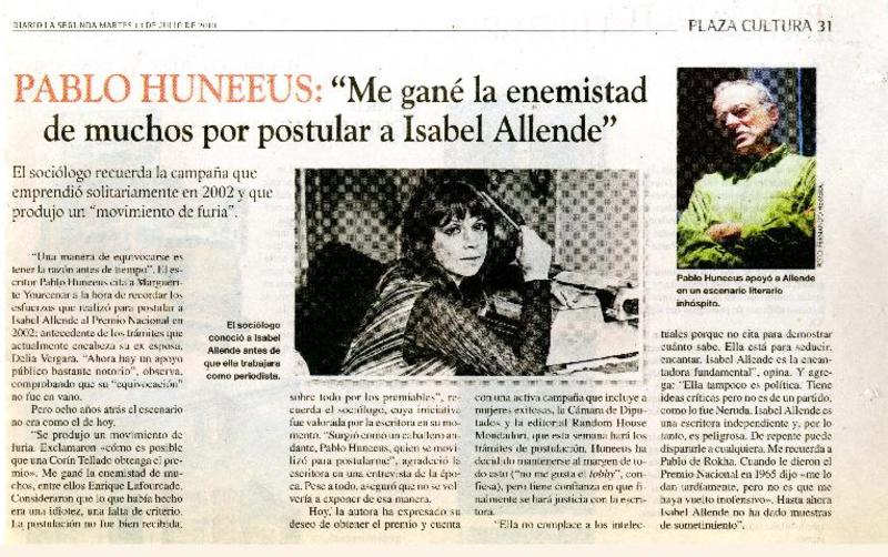 Autores chilenos - Allende, Isabel - Huneeus, Pablo - Entrevista