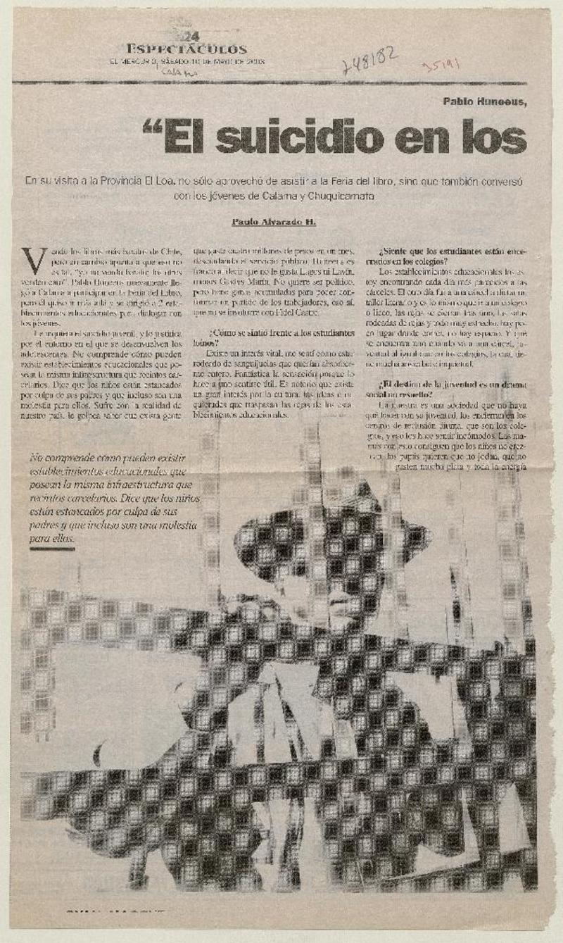 El suicidio en los jóvenes está justificado" : [entrevistas] [artículo] Paulo Alvarado H.