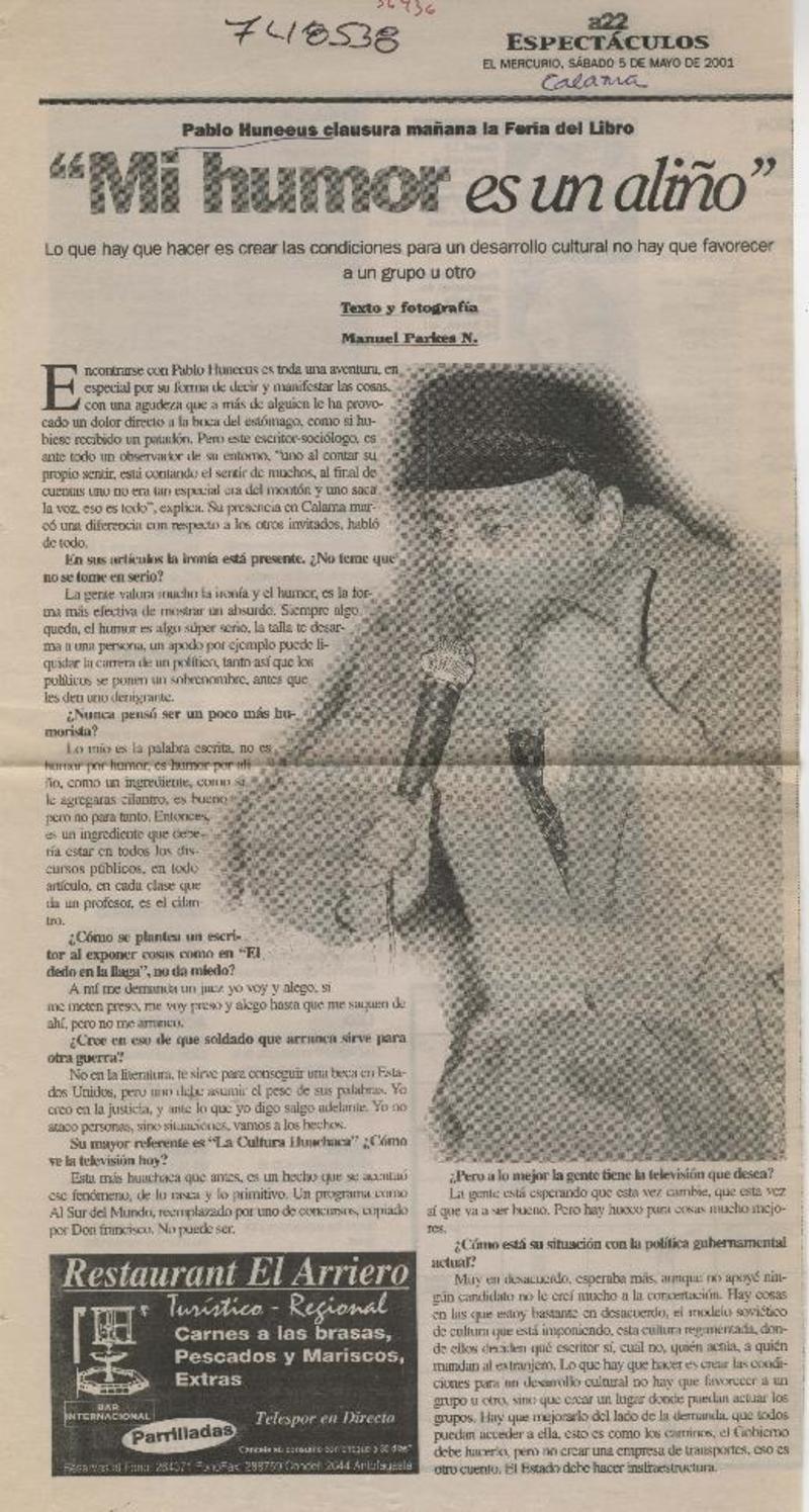 Mi humor es un aliño": [entrevistas] [artículo] Manuel Parkes N.
