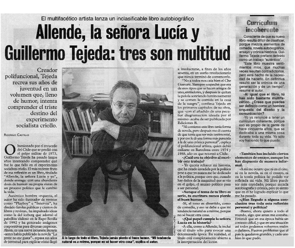 Allende, la señora Lucía y Guillermo Tejeda: tres son multitud [entrevistas] [artículo] : Rodrigo Castillo.