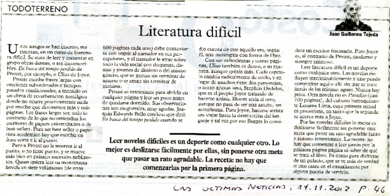 Literatura dificil [artículo]Juan Guillermo Tejeda