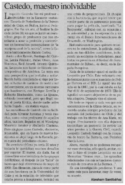 Castedo, maestro inolvidable [artículo] Abraham Santibánez