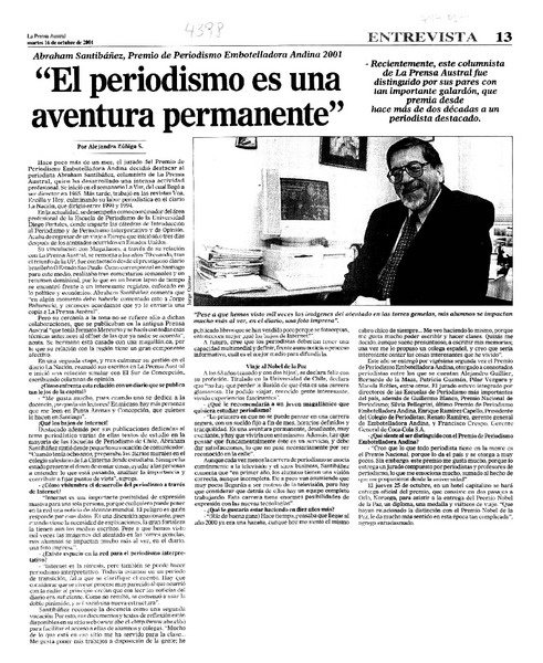 Premio Nacional de Periodismo [artículo] Abraham Santibáñez