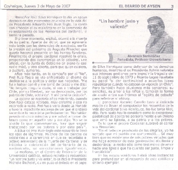 "Un hombre justo y valiente" [artículo]Abraham Santibáñez.