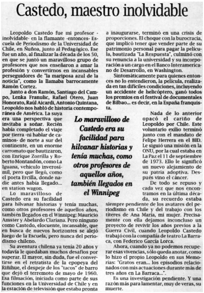 Castedo, maestro inolvidable [artículo] Abraham Santibáñez.