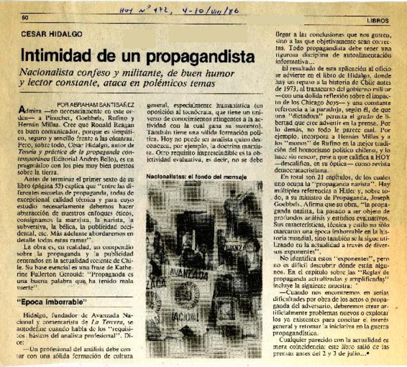 Intimidad de un propagandista [artículo] Abraham Santibáñez.