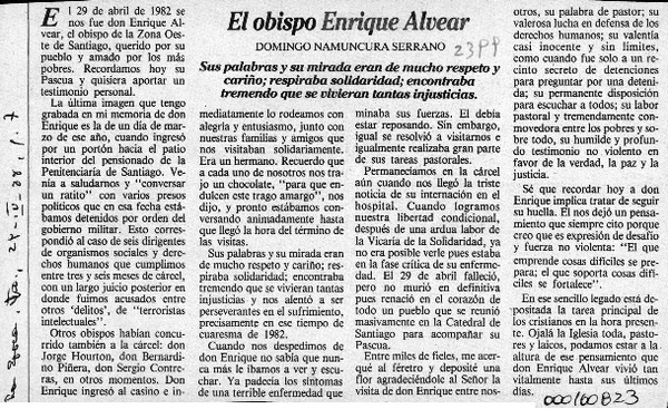 El Obispo Enrique Alvear [artículo] Domingo Namuncura Serrano.
