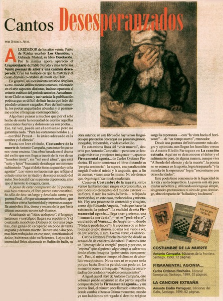 Autores chilenos - Campaña, Antonio - Ordenes Pincheira, Carlos - Costumbre de la muerte - Parragjuez L., Eledino - Canción extraña - Firmamental agonía