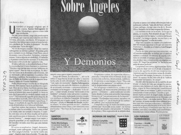 Autores chilenos - Cumplido, Alberto - Alcalde, Francisco J. - Fuegos sumergidos - Morada de hastío - Montealegre, Pedro - Santos subrogantes