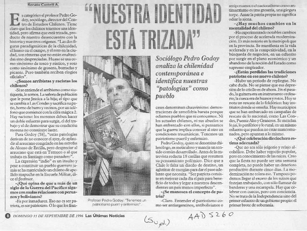 "Nuestra identidad está trizada" [artículo] Renato Castelli A.