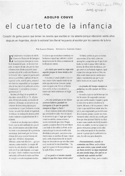 "Estuve destinado al fracaso" [entrevista] [artículo] : Claudia Donoso.