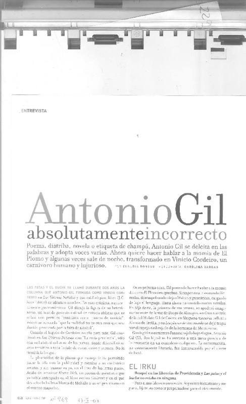 Antonio Gil absolutamente incorrecto (entrevista) [artículo] Claudia Donoso.