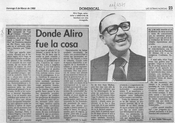 Donde Aliro fue la cosa [artículo] Juan Rubén Valenzuela.