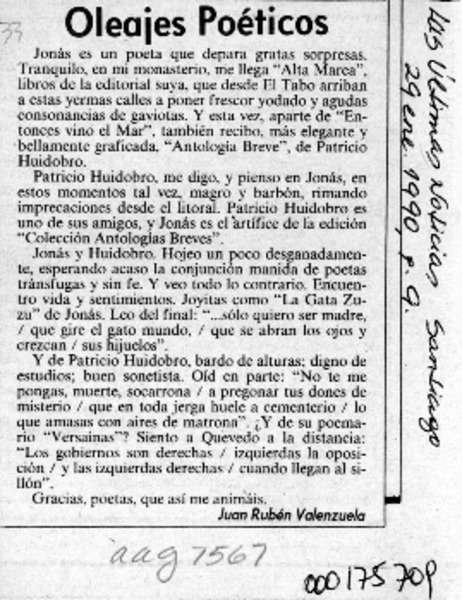 Oleajes poéticos [artículo] Juan Rubén Valenzuela.