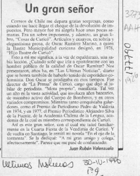 Un gran señor [artículo] Juan Rubén Valenzuela.