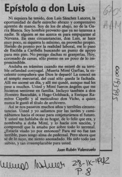 Epístola a don Luis [artículo] Juan Rubén Valenzuela.
