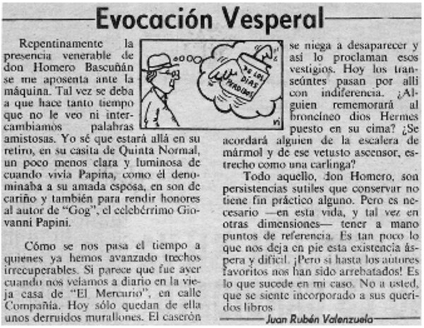 Evocación vesperal [artículo] Juan Rubén Valenzuela.