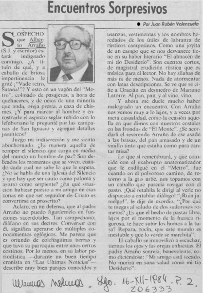 Encuentros sorpresivos [artículo] Juan Rubén Valenzuela.