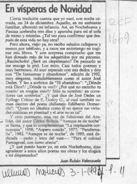 En vísperas de Navidad [artículo] Juan Rubén Valenzuela.