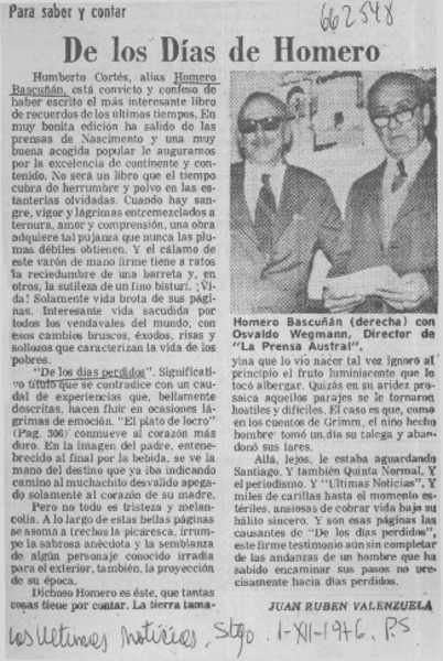 Autores chilenos - Bascuñan, Homero - De los días perdidos