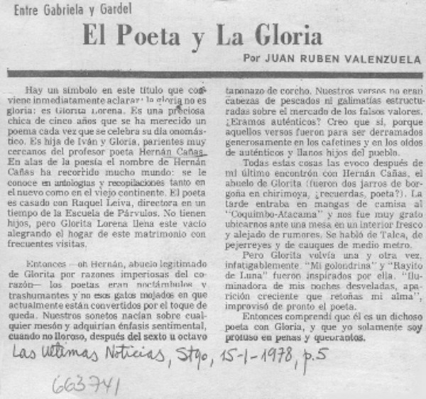 El poeta y la gloria [artículo] Juan Rubén Valenzuela