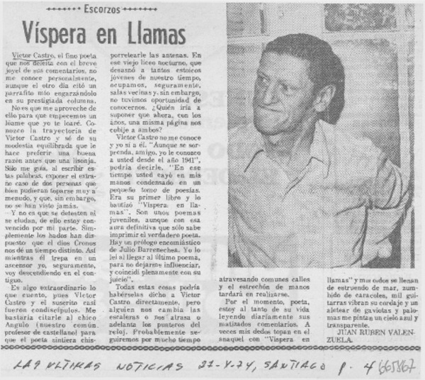 Vísperas en llamas [artículo] Juan Rubén Valenzuela.