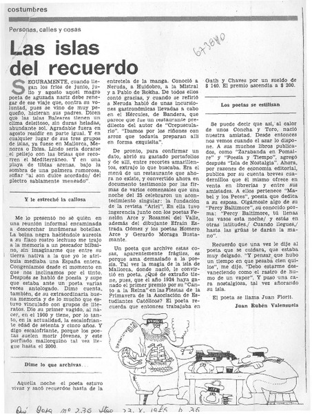 Las islas del recuerdo [artículo] Juan Rubén Valenzuela.