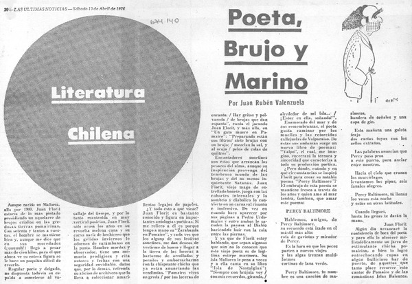 Poeta, brujo y marino [artículo] Juan Rubén Valenzuela.