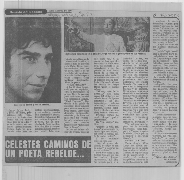 Celestes caminos de un poeta rebelde -- [artículo] Juan Rubén Valenzuela.