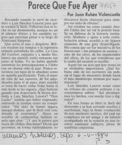 Parece que fue ayer [artículo] Juan Rubén Valenzuela.