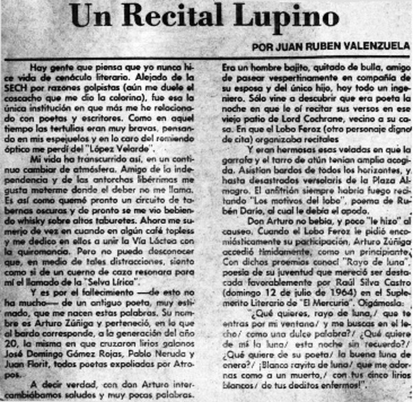 Un recital lupino [artículo] Juan Rubén Valenzuela.