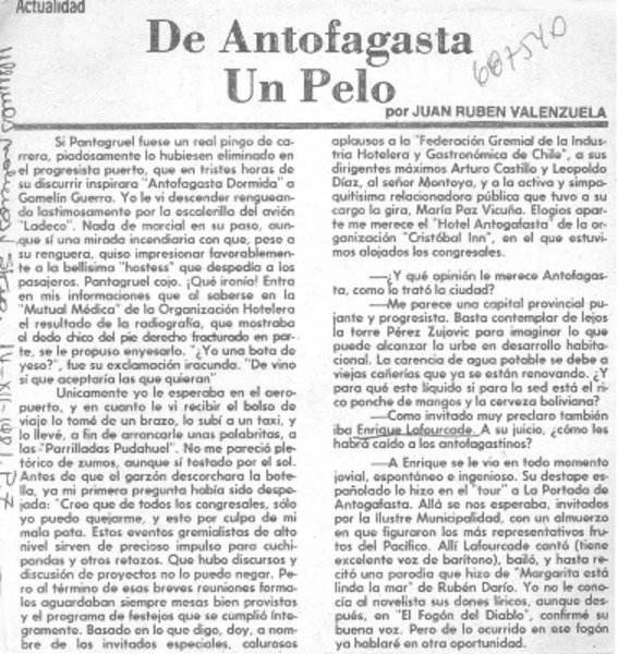 De Antofagasta un pelo [artículo] Juan Rubén Valenzuela.