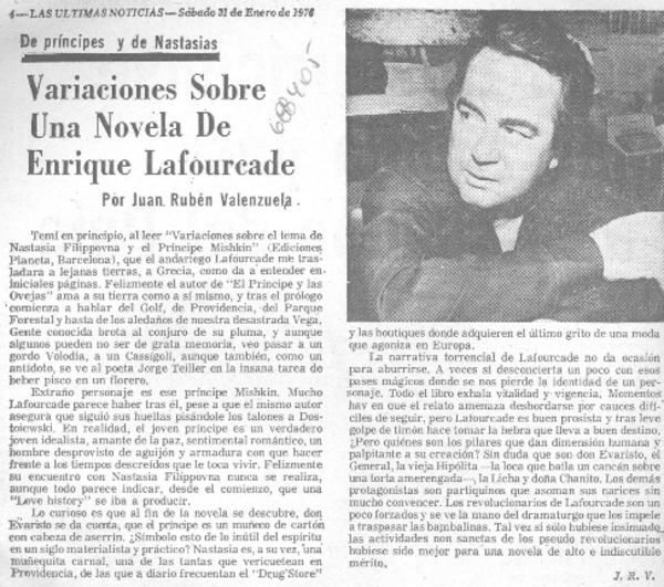 Variaciones sobre una novela de Enrique Lafourcade [artículo] Juan Rubén Valenzuela.